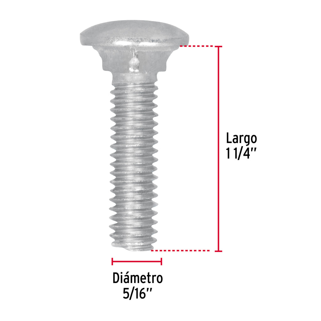 TORNILLO COCHE GALVANIZADO, 5/16 X 1 1/4" POR CAJA C/60 PZAS