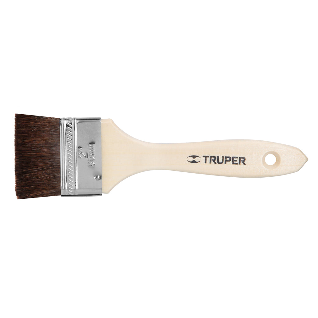 Cerdas de poliéster con acabado extrafino en la punta, corte angularMango de madera con orificio para colgarDistribuyen uniformemente la pinturaIdeal para pinturas base agua