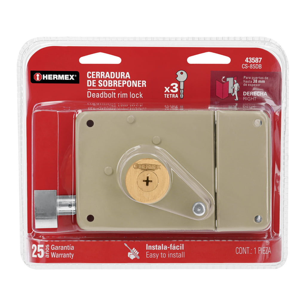 Cilindro de latón sólido con 9 pernosCilindro exterior integrado que facilita su instalaciónPara colocación en puertas metálicas o de madera con espesor hasta de 1-1/2" (38 mm)Botón de seguridad