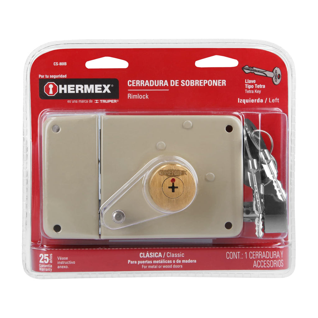 Cilindro de latón sólido con 9 pernosCilindro exterior ajustablePara colocación en puertas metálicas o de madera con espesor hasta de 2-3/8" (60 mm)Botón de seguridad