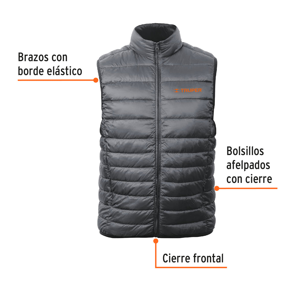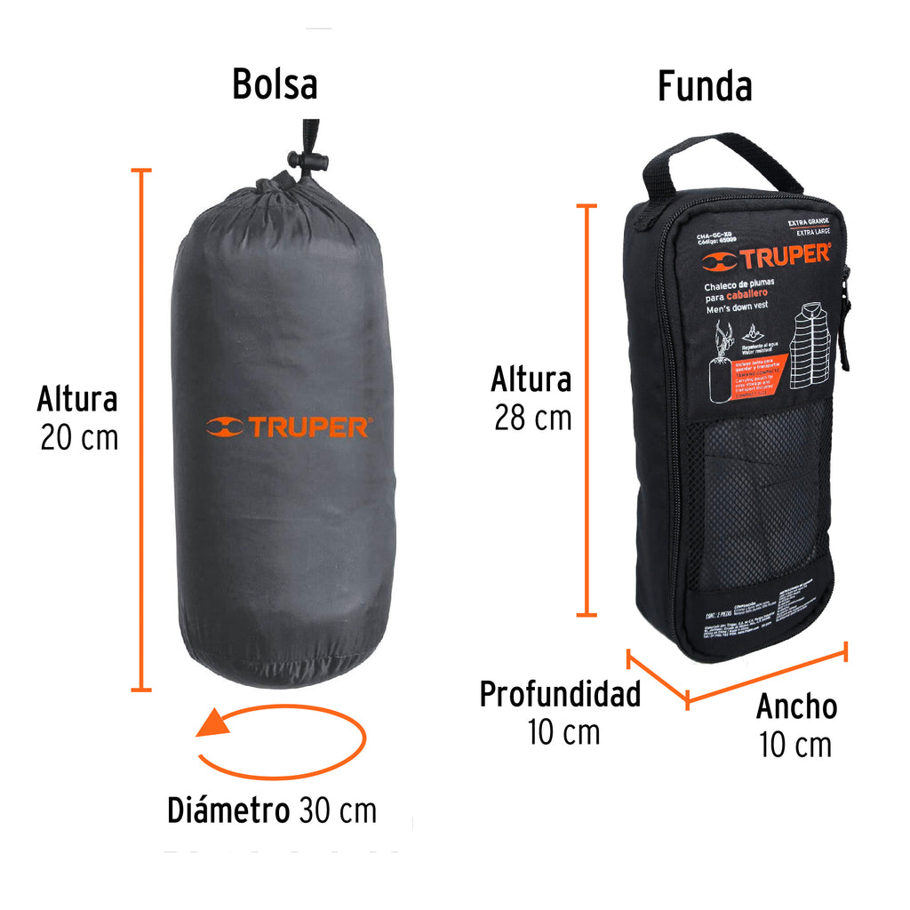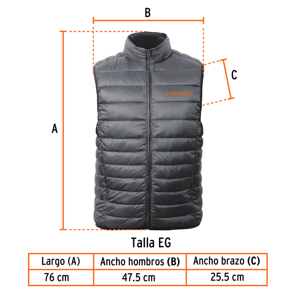 Exterior y forro 100% nylonRelleno 90% plumón, 10% pluma de gansoDiseño compactable para guardarse en bolsa y trasladar de forma ligera2 Bolsillos laterales afelpados con cierre y 1 bolsillo internoBrazos y cintura con borde elástico...