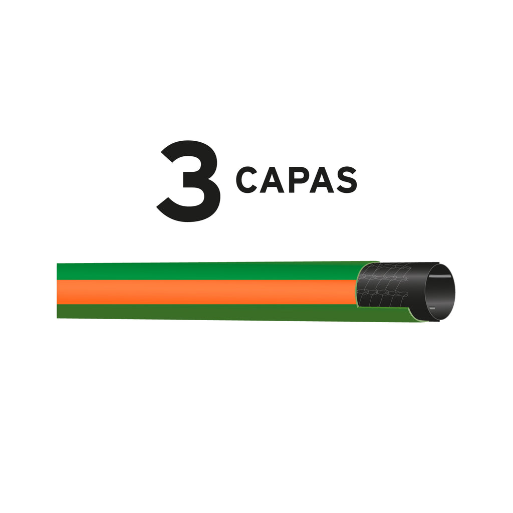 Manguera de 3 capas Conexiones plásticasPortamanguera de plástico2 costillas internas que permiten el flujo de agua aún con la manguera dobladaUso doméstico