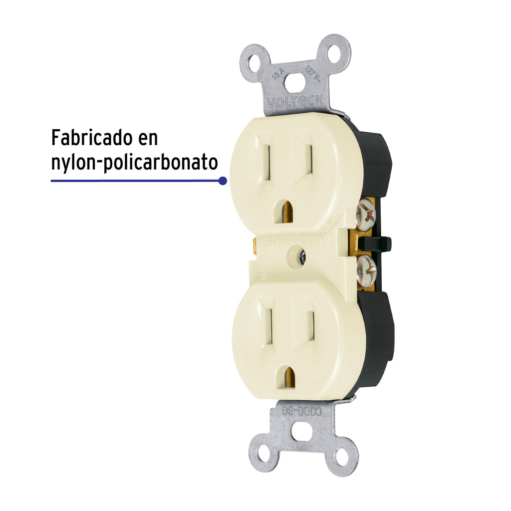 Fabricado en nylon-policarbonato con soporte de acero galvanizadoCon retardante a la flama para mayor seguridadMontaje en placa dúplex línea Standard