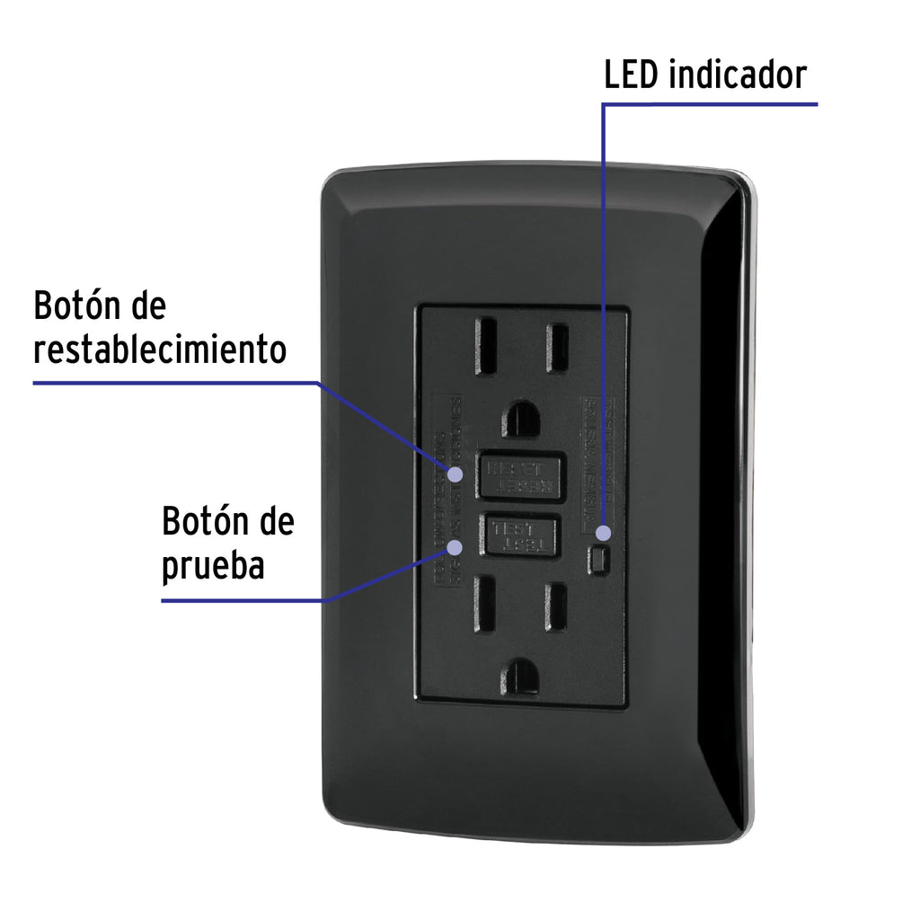 Placa de ABS, contacto de polipropileno y policarbonatoCon interruptor de circuíto por falla a tierra GFCI (ICFT)LED indicador de voltaje en línea, botón de restablecimiento y pruebaCon retardante a la flama para mayor seguridadPara espacios...