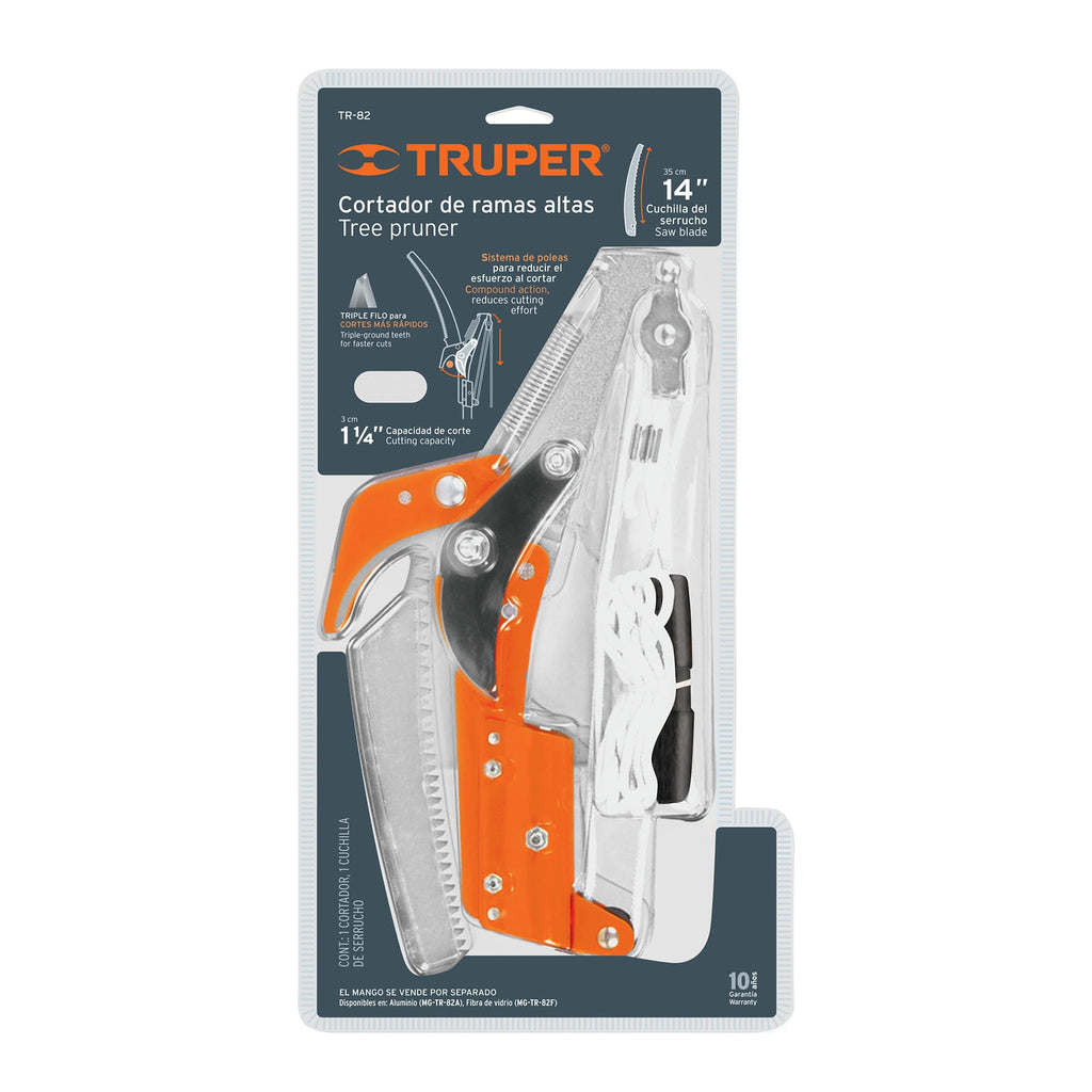 Hoja de acero SK5, templada para máxima duración de filoCuchilla de pasoSistema de polea para reducir el esfuerzo al cortarIdeal para cortes altos y de difícil acceso
