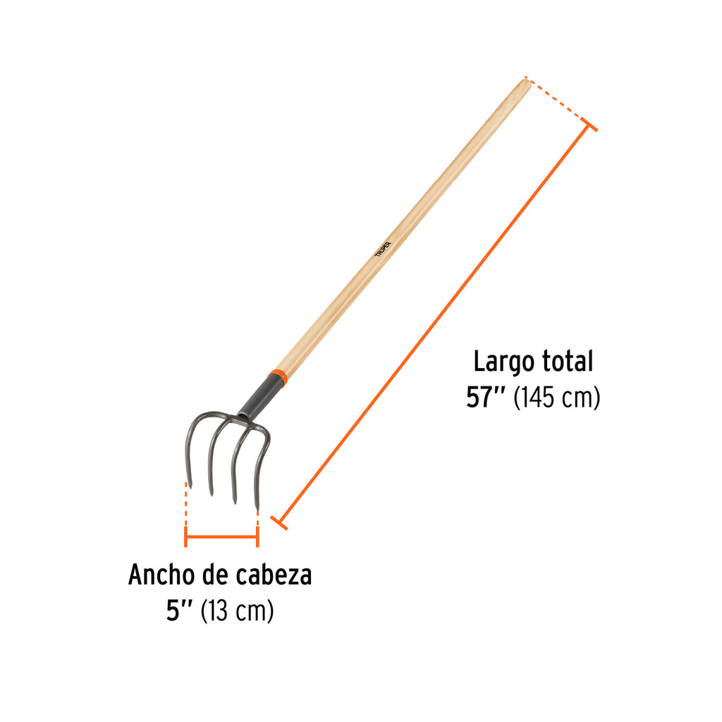 CULTIVADOR FORJADO PARA JARDMN 5 DIENTES, MANGO DE 60'