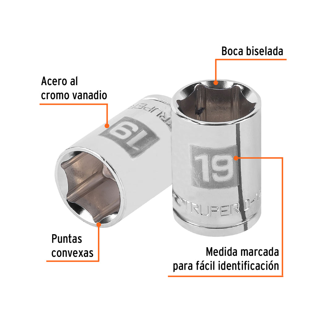 Fabricado en acero al cromo vanadio con acabado pulido espejo resistente a la oxidación y de fácil limpiezaSistema de sujeción Truper-Drive con puntas convexas que aseguran y aumentan el torque sin dañar tuercas ni cabezas...