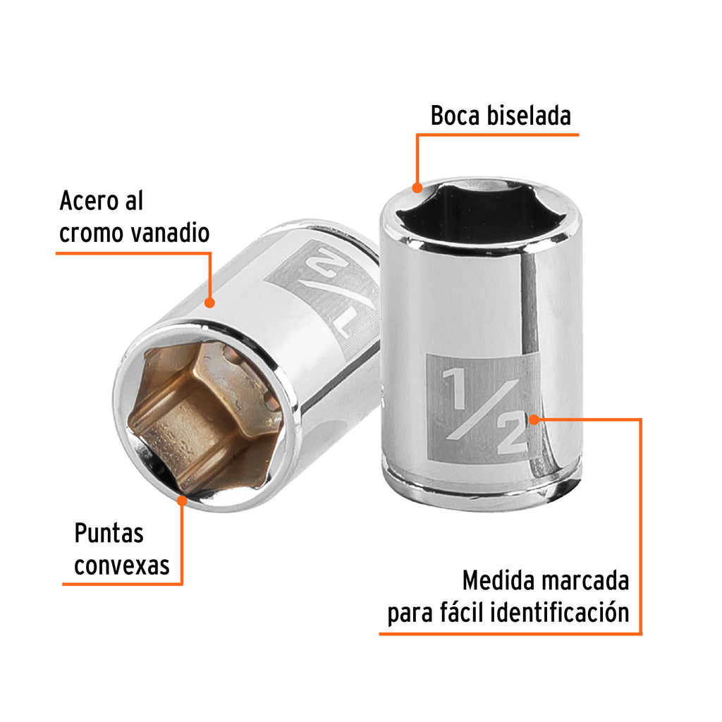 Fabricado en acero al cromo vanadio con acabado pulido espejo resistente a la oxidación y de fácil limpiezaSistema de sujeción Truper-Drive con puntas convexas que aseguran y aumentan el torque sin dañar tuercas ni cabezas...