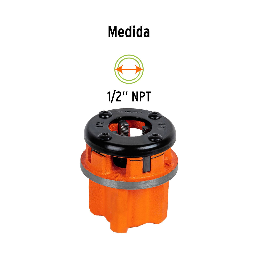 Cuerpo de hierro maleable y cubierta de aceroPeines reemplazables en acero al cromoVentanas para salida de residuosPara juego de tarrajas modelos TA-850 y TA-851 marca Truper®