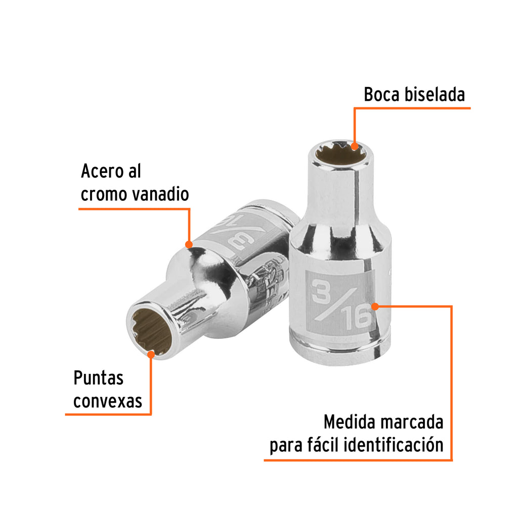 DADO DE 3/16', 12 PUNTAS, CUADRO 1/4', TRUPER