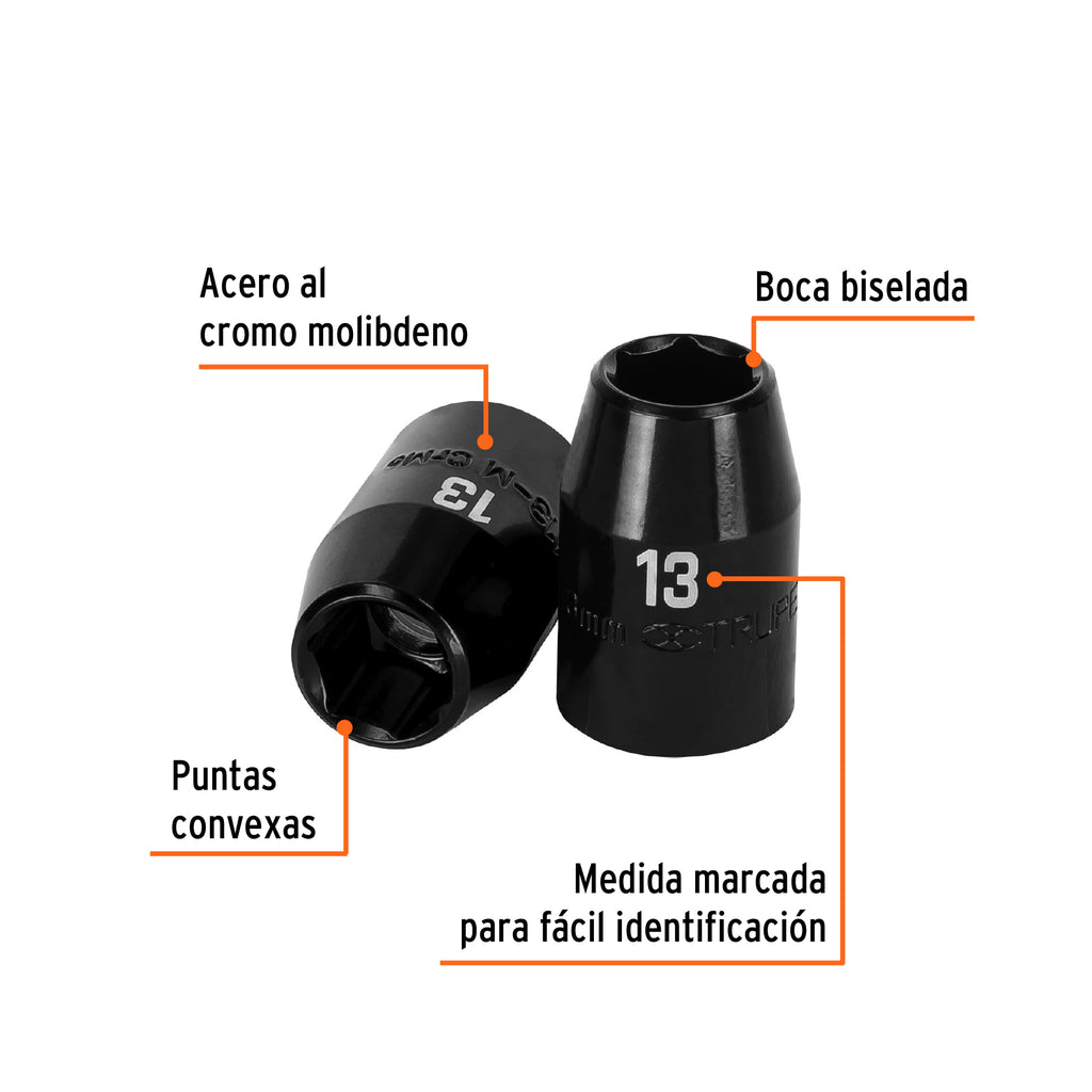 DADO DE IMPACTO, 6 PUNTAS, CUADRO 1/2', MILIMÉTRICO DE 13MM