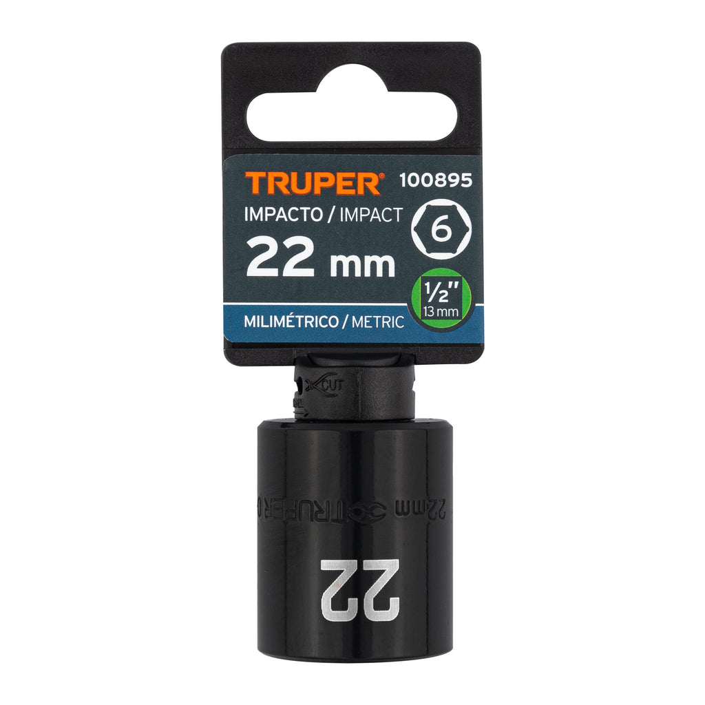 DADO DE IMPACTO DE 22 MM, 6 PUNTAS, CUADRO 1/2', TRUPER