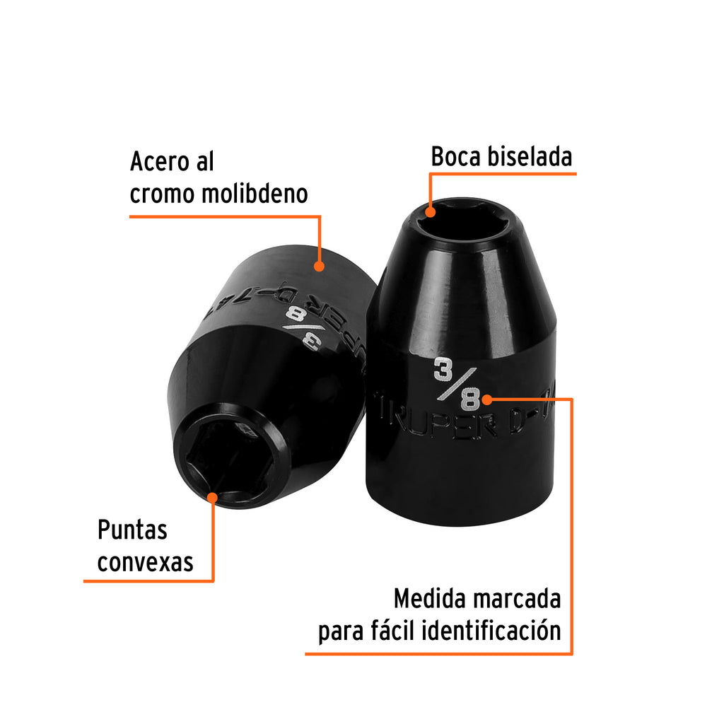 Fabricado en acero al cromo molibdeno con acabado fosfatado resistente a la corrosiónSistema de sujeción Truper-Drive con puntas convexas que aseguran y aumentan el torque sin dañar tuercas ni cabezas de tornillosMedida marcada para fácil...
