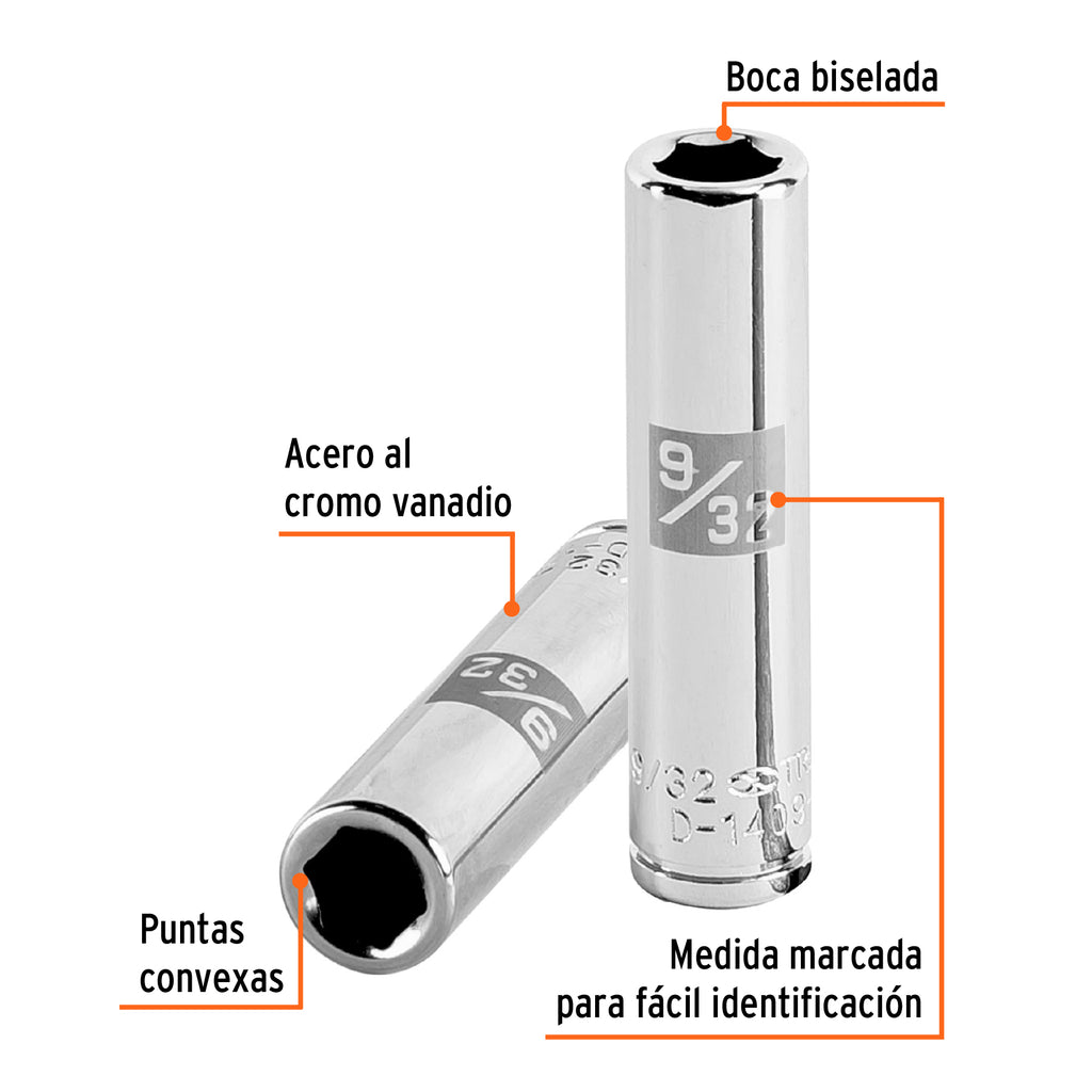 DADO LARGO CUADRO 1/4' HEX STD 9/32'