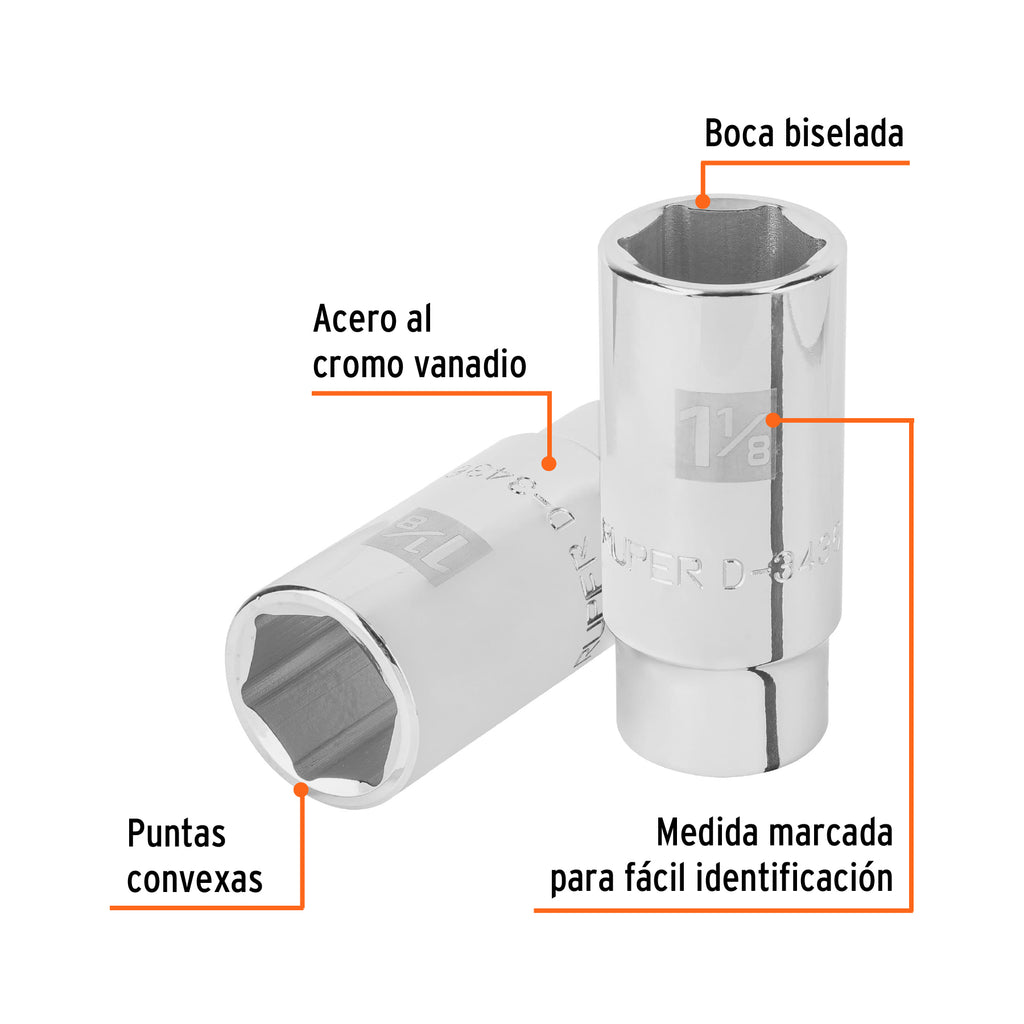 DADO LARGO DE 1-1/8', 6 PUNTAS, CUADRO 3/4', TRUPER