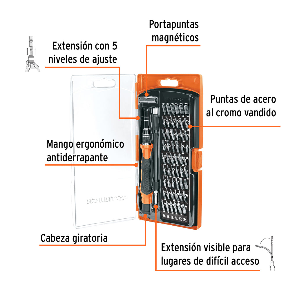 Puntas de acero al cromo vanadio 2X más resistente al desgaste que el acero al carbono Mango ergonómico antiderrapante con cabeza giratoria Portapuntas magnético Extensión flexible para lugares de difícil acceso con 5 niveles de ajuste Para electrónica y trabajos de precisión
