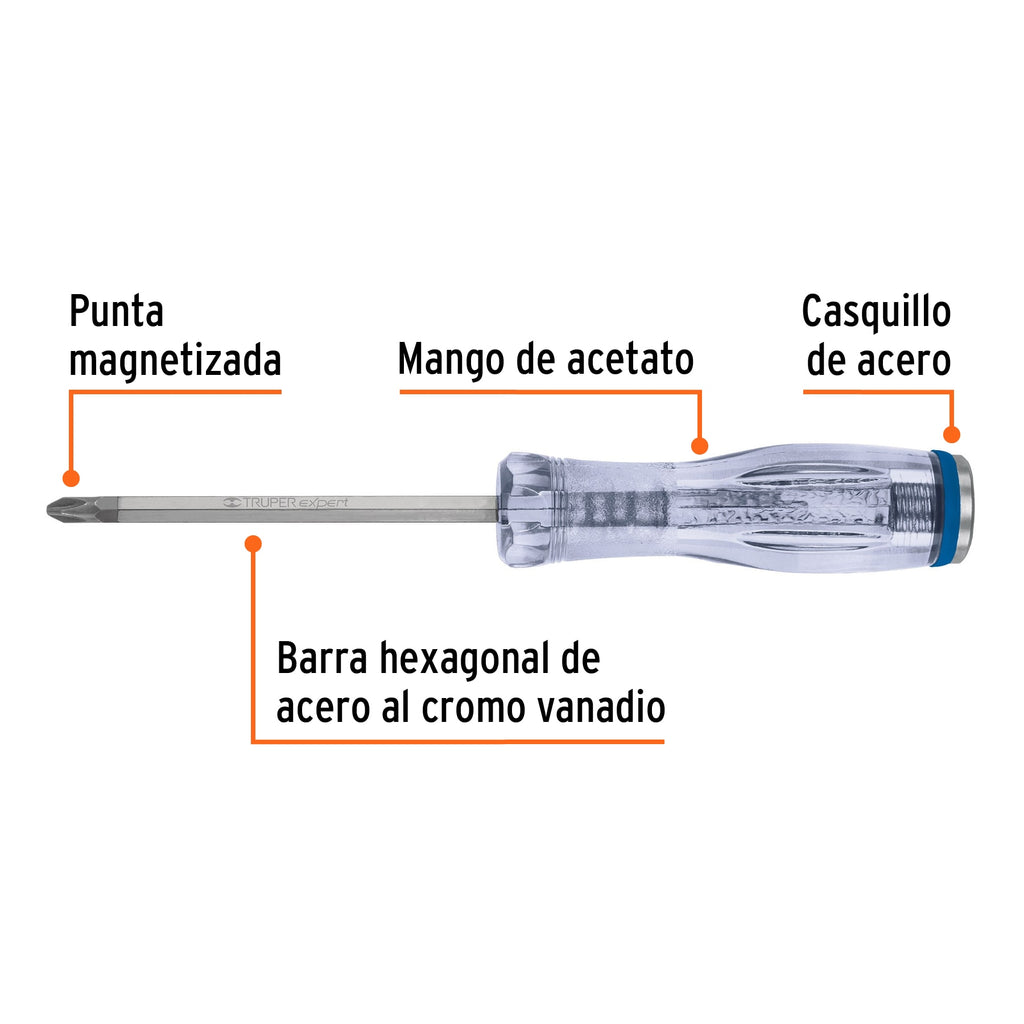 Barra hexagonal de acero al cromo vanadio, 2X más resistentes al desgaste que las de acero al carbonoMango de acetato, 3X mayor resistencia al impacto que los mangos de PVCCasquillo de acero que transmite el...