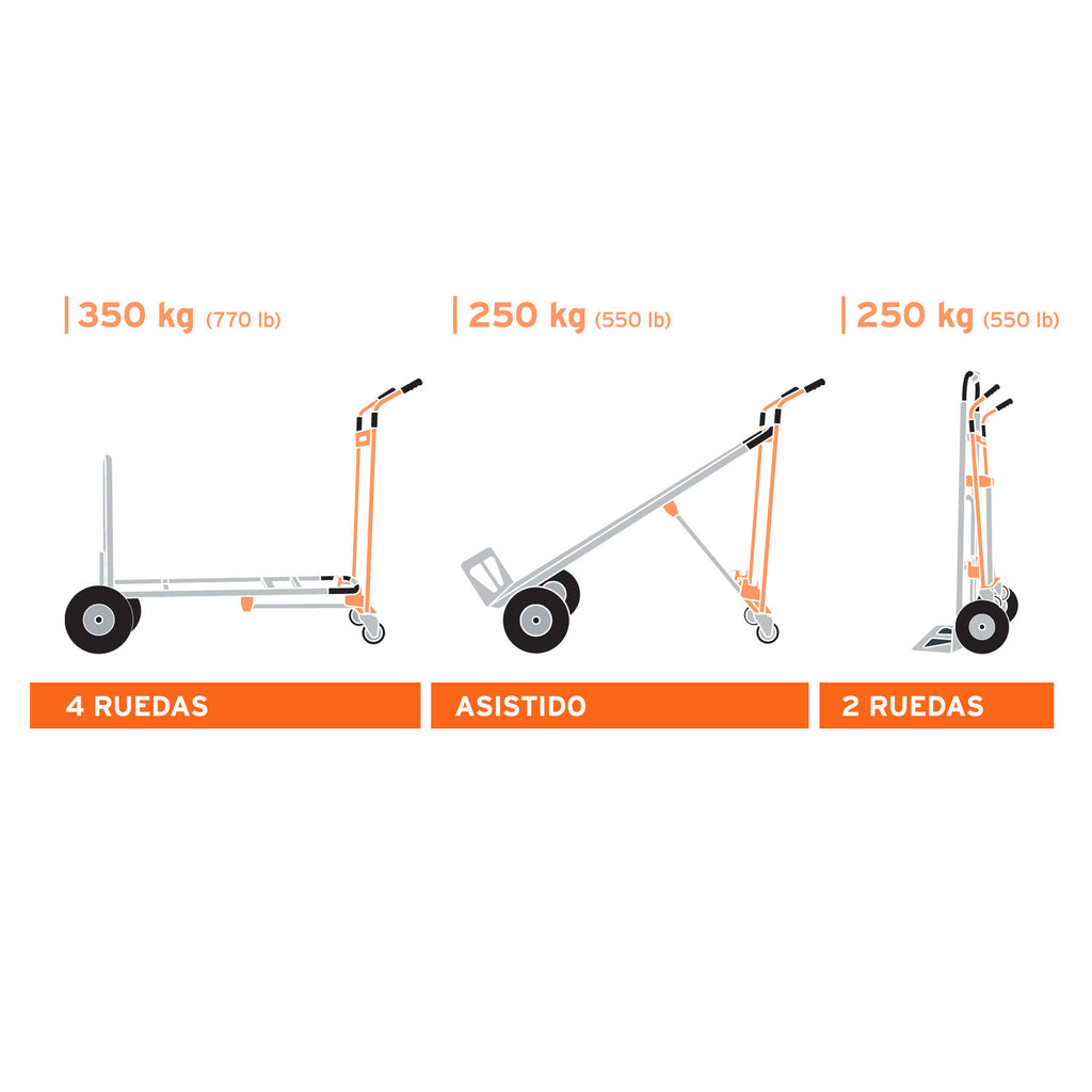 3 en 1 Fácil conversión, 2 ruedas, 4 ruedas y asistido