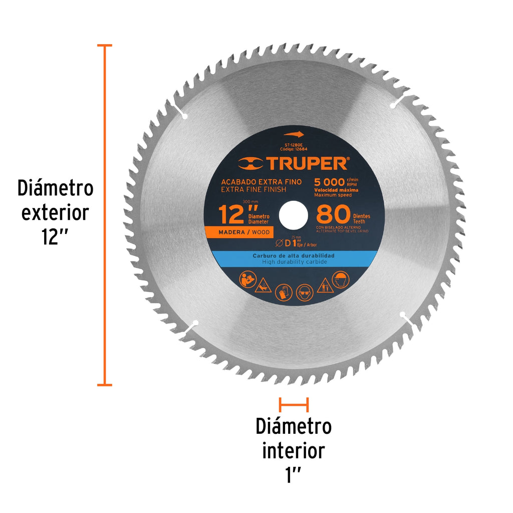 80 dientes de carburo de tungsteno para corte extrafinoSoldadura de alta frecuencia que brinda 50% más resistencia al desprendimientoATB (Alternate-Top Bevel) Biselado alterno: La sierra alterna un diente hacia la derecha y otro a la...