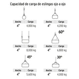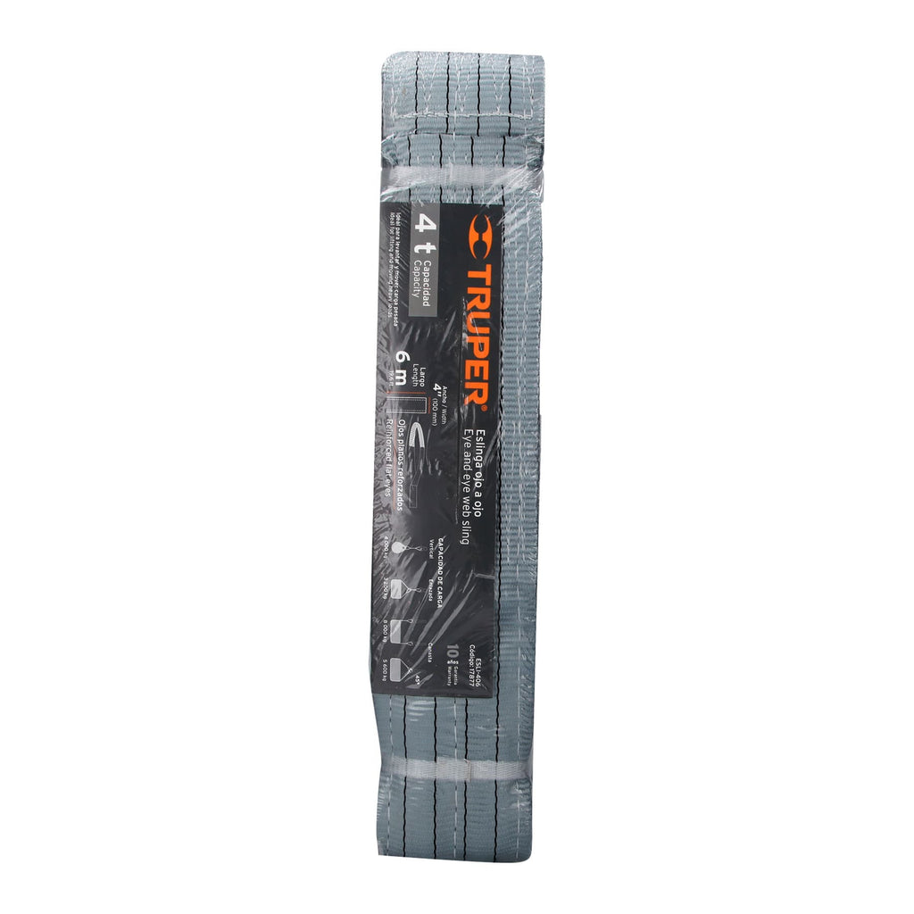 Banda plana 100% poliésterCapacidad de carga 4,000 kgOjos planos reforzadosNo daña la superficie de objetosPara levantar y mover cargas pesadas