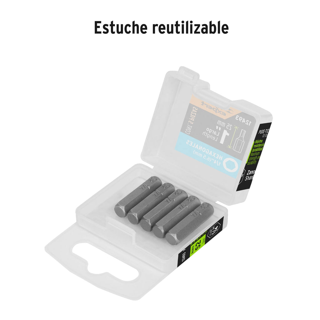 ESTUCHE CON 5 PUNTAS HEXAGONALES DE 1/4MM LARGO 1', EXPERT