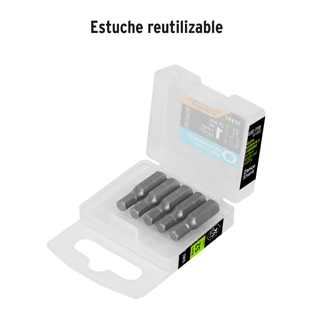ESTUCHE CON 5 PUNTAS HEXAGONALES DE 3/16MM LARGO 1', EXPERT