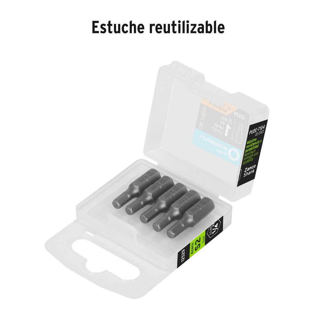 ESTUCHE CON 5 PUNTAS HEXAGONALES DE 4 MM LARGO 1', EXPERT