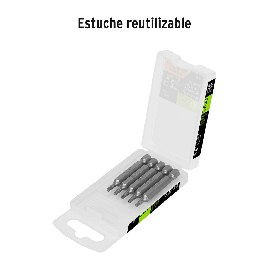 ESTUCHE CON 5 PUNTAS TORX T10 CON SEGURO LARGO 2', EXPERT