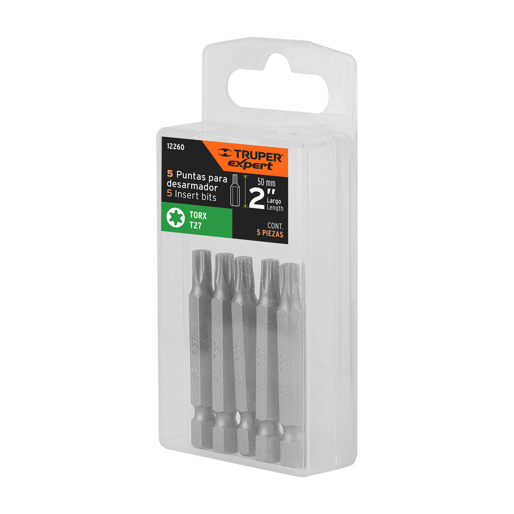ESTUCHE CON 5 PUNTAS TORX T27 LARGO 2', TRUPER EXPERT
