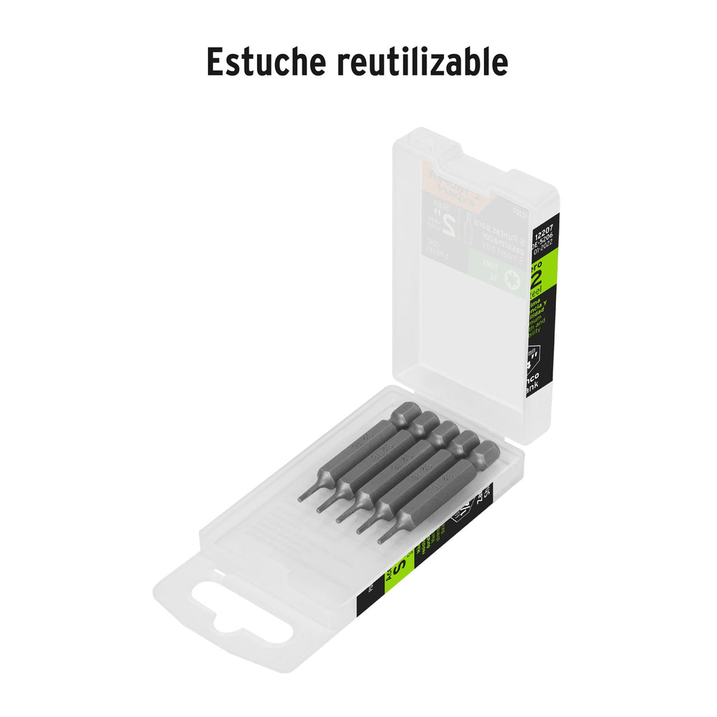 Fabricadas en acero S2, 2X más resistentes al desgaste que las de acero al cromo vanadioMaquinado para un ajuste precisoIdeal para taladro, desarmador eléctrico o manualEstuche reutilizable