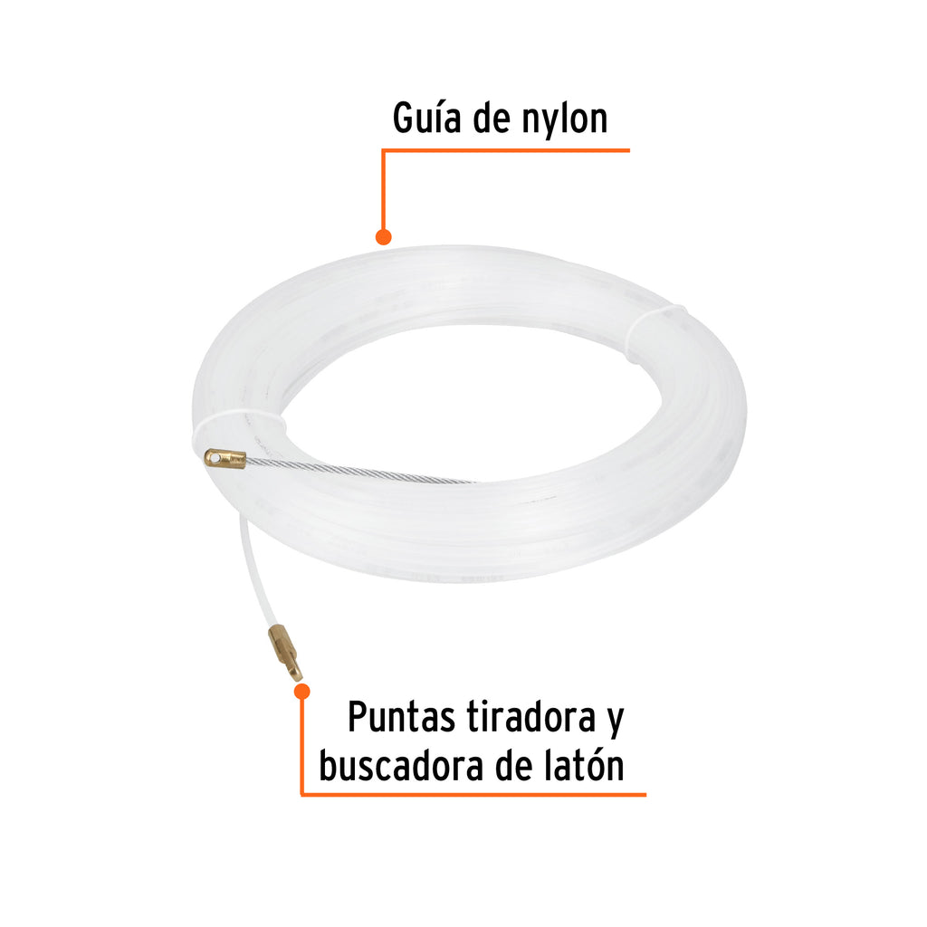 Guía fabricada en nylon y cable de acero galvanizadoPuntas tiradora y buscadora de latónPara jalar cables en ductos de instalaciónFacilita la instalación del cableado