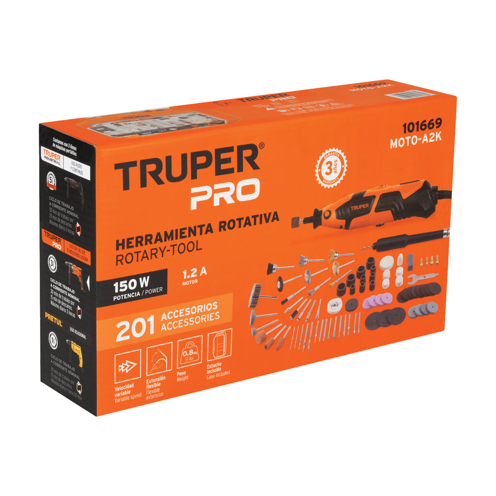 Gancho integrado que permite colgar herramienta y utilizar su extensión flexible tipo lápiz (collet 1/8")
