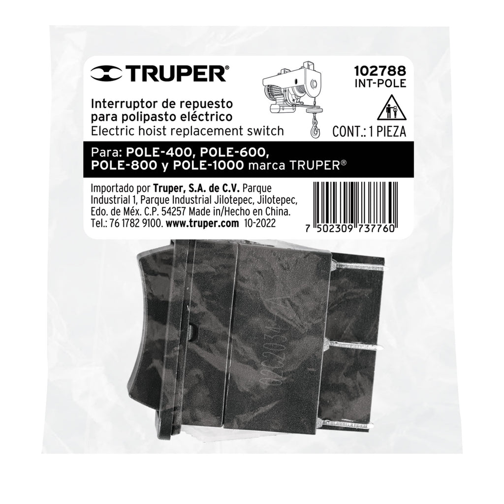 Para polipastos eléctricos modelo POLE-400, POLE-600, POLE-800 y POLE-1000 marca Truper®
