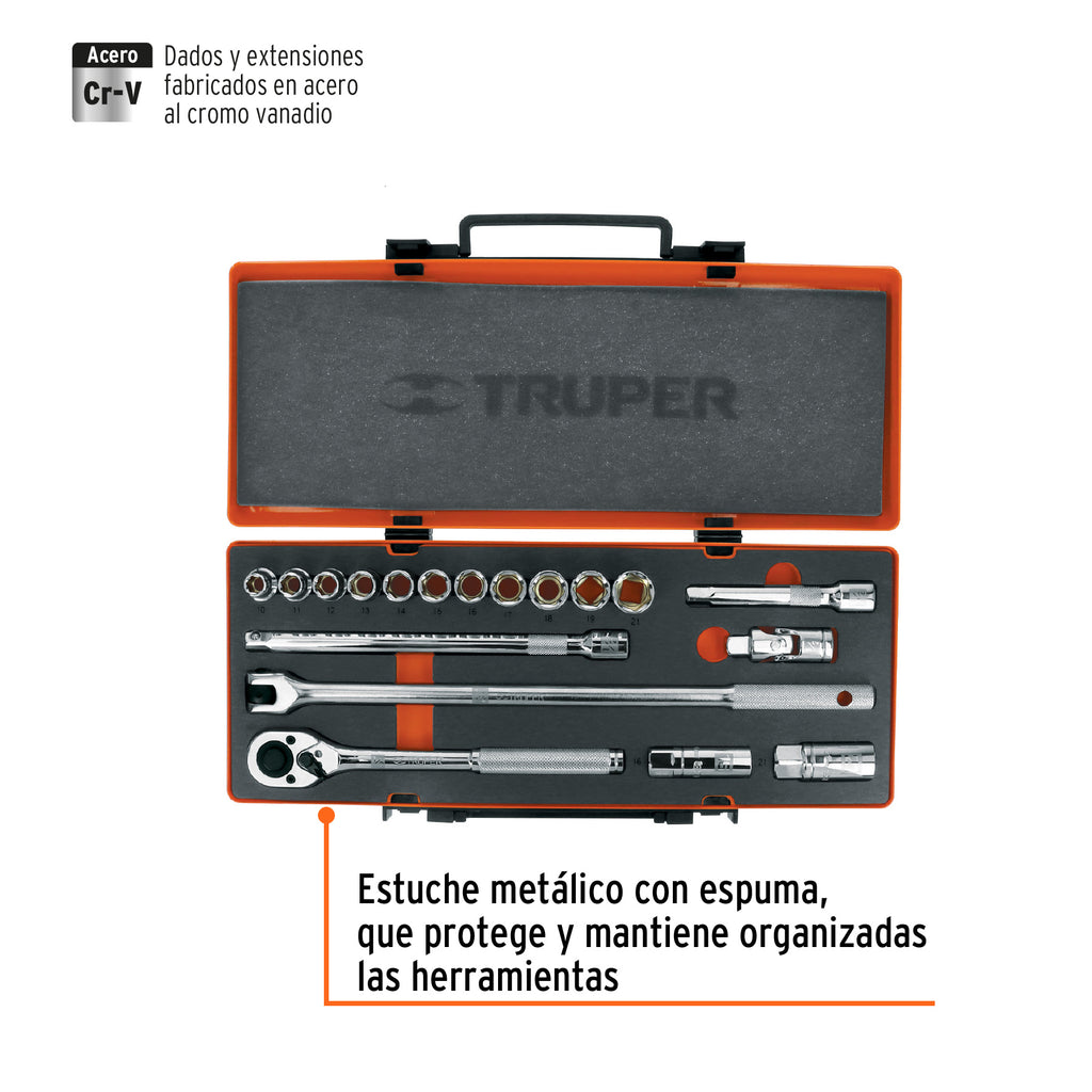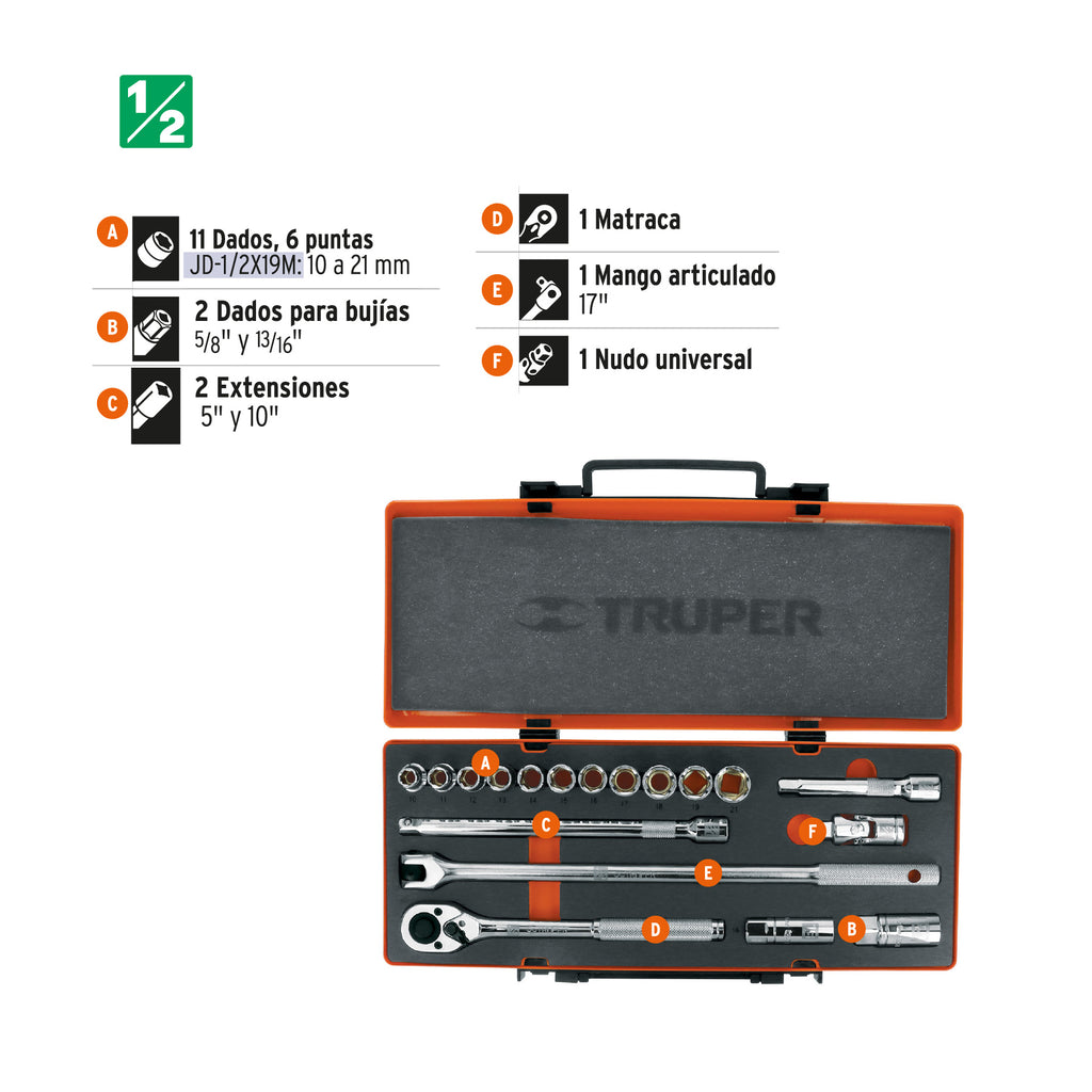 JGO DE DADOS MM CUADRO 1/2' 19 PZAS