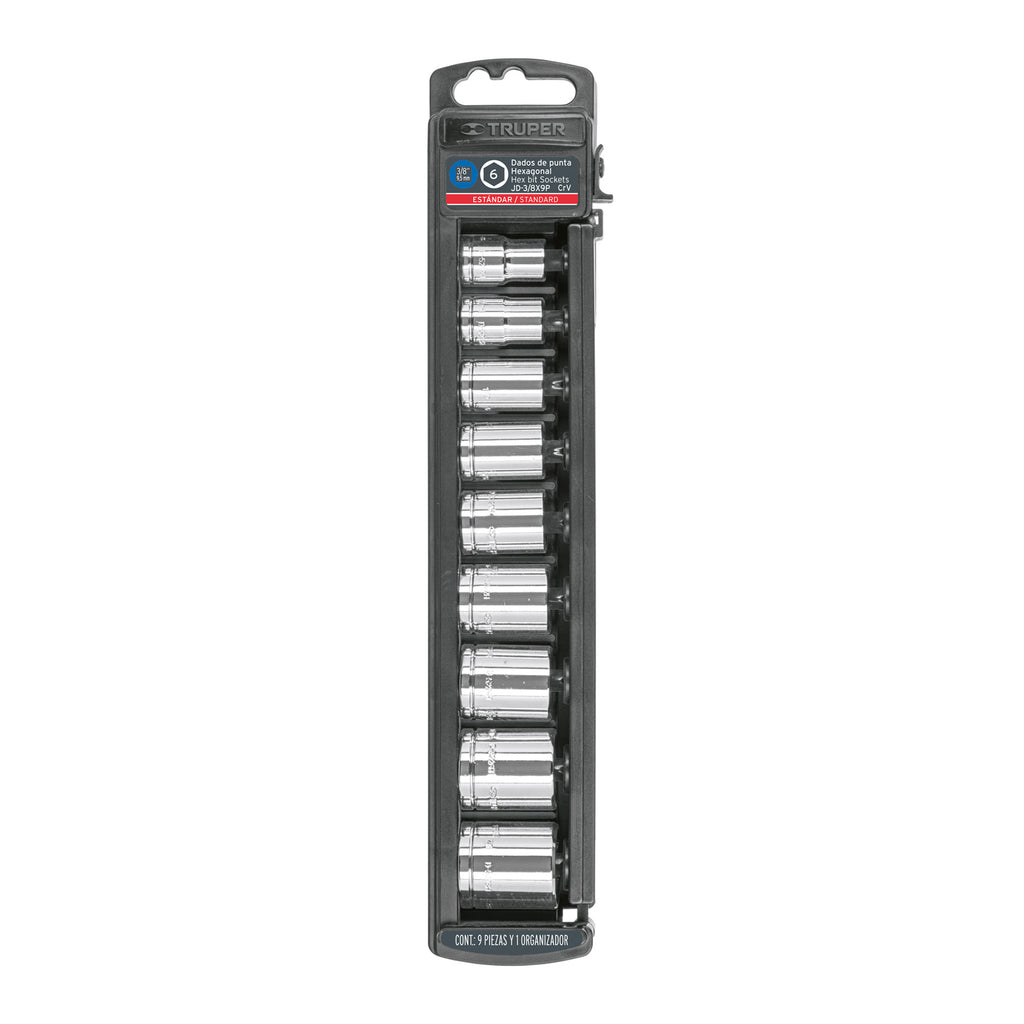 JGO DE DADOS STD CUADRO 3/8' 9 PZAS
