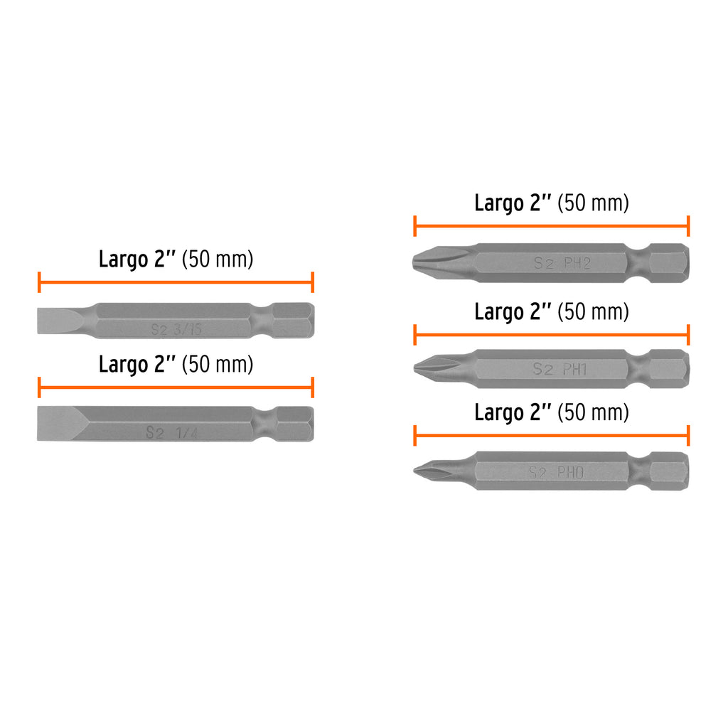 Fabricadas en acero S2, 2X más resistentes al desgaste que las de acero al cromo vanadioMaquinado para un ajuste precisoIdeal para taladro, desarmador eléctrico o manualEstuche reutlizable