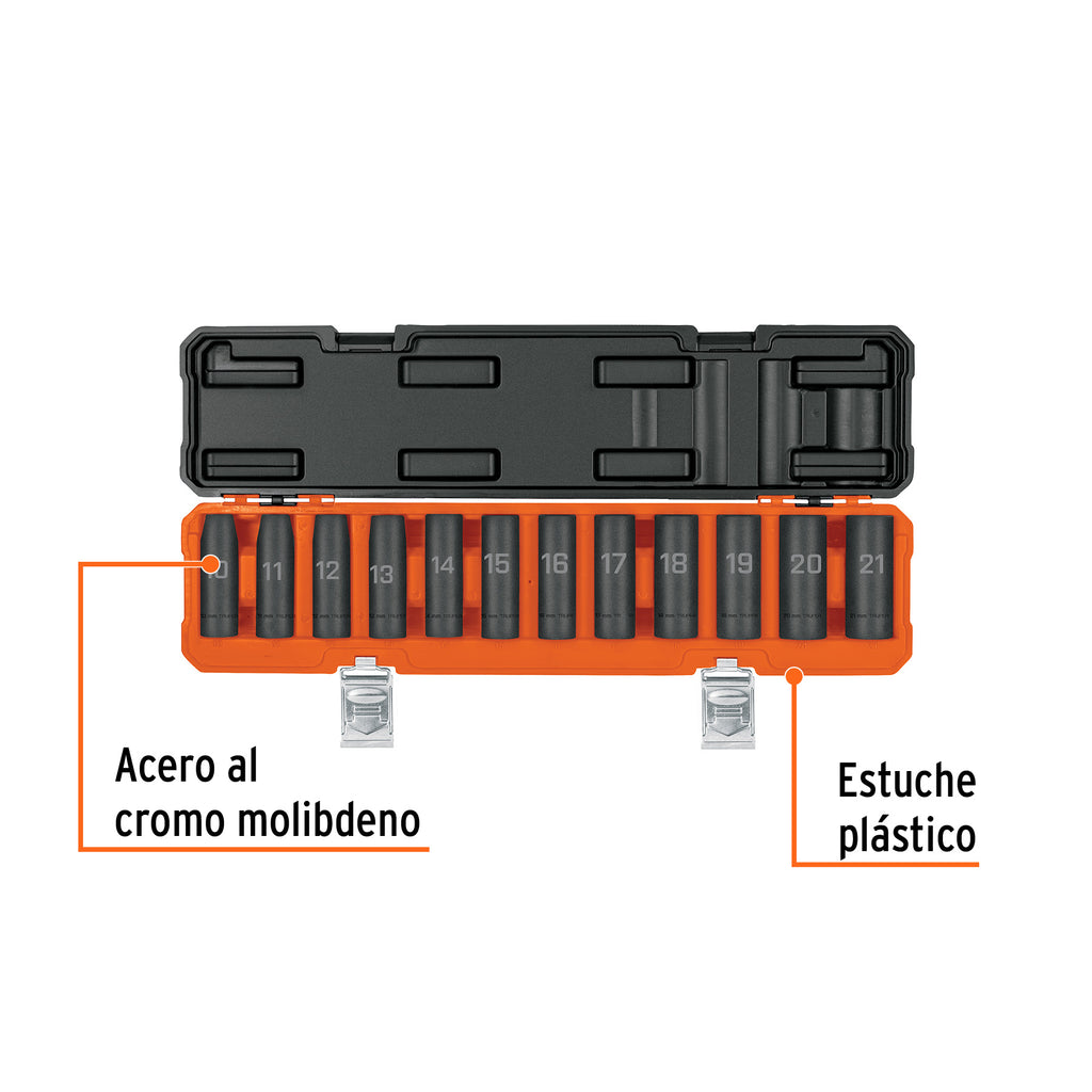JUEGO 12 DADOS LARGOS 1/2' IMPACTO PROTECCISN PLASTICA 6P MM