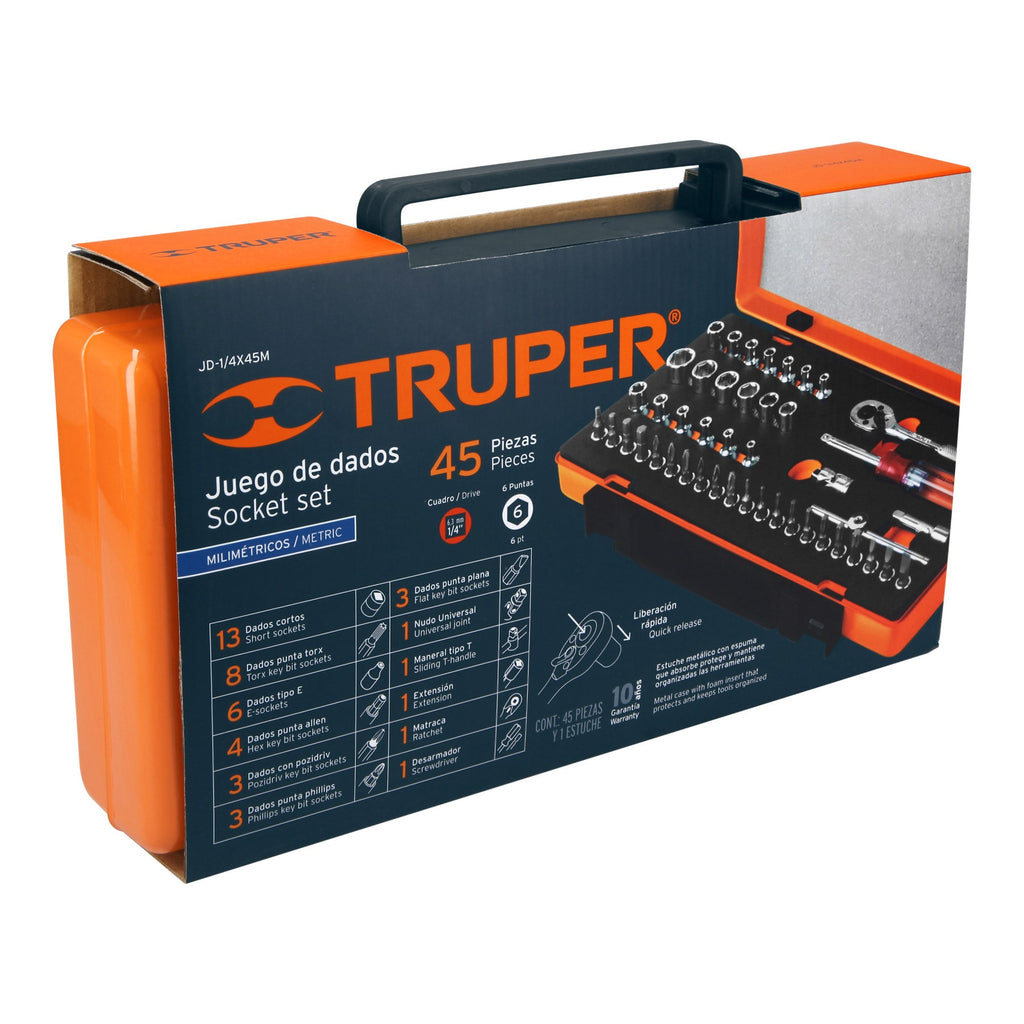 JUEGO DADOS Y PUNTAS 45 PZAS CUADRO 1/4'