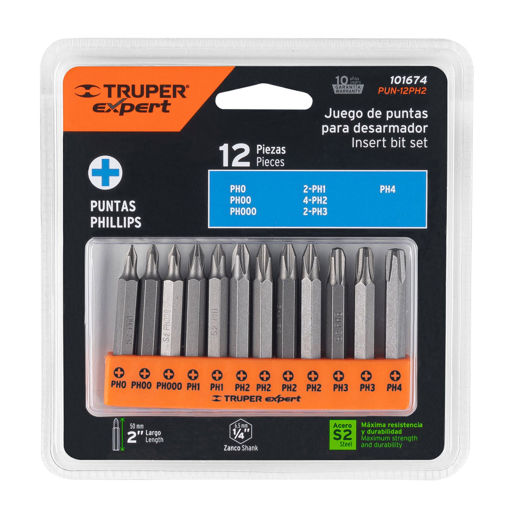 Fabricadas en acero S2, 2X más resistentes al desgaste que las de acero al cromo vanadioMaquinado para un ajuste precisoIdeal para taladro, desarmador eléctrico o manualOrganizador plástico