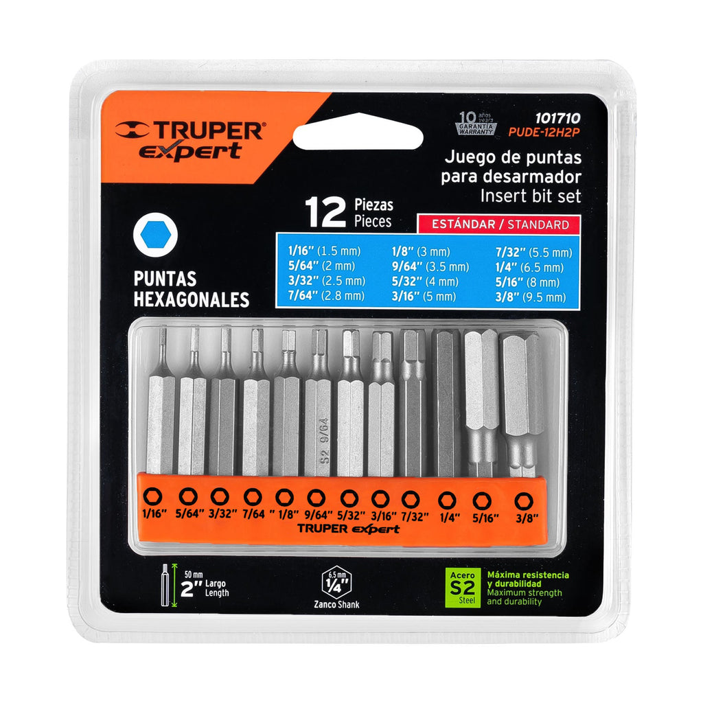 JUEGO DE 12 PUNTAS HEXAGONALES STD LARGO 2', EXPERT