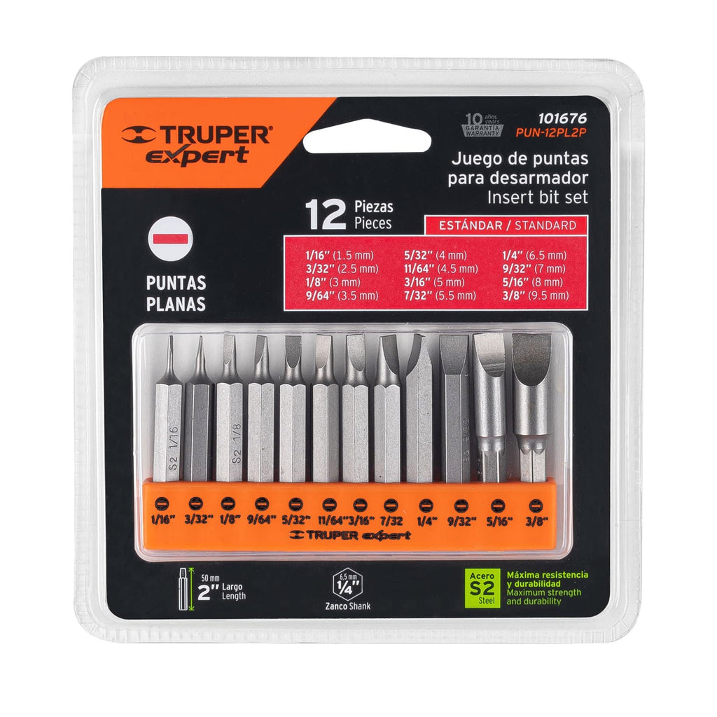 JUEGO DE 12 PUNTAS PLANAS STD COMBINADAS LARGO 2', EXPERT