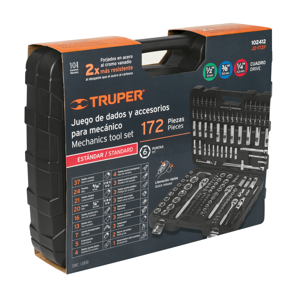 JUEGO DE 172 HERRAMIENTAS 1/4', 3/8' Y 1/2' STD P/MECANICO