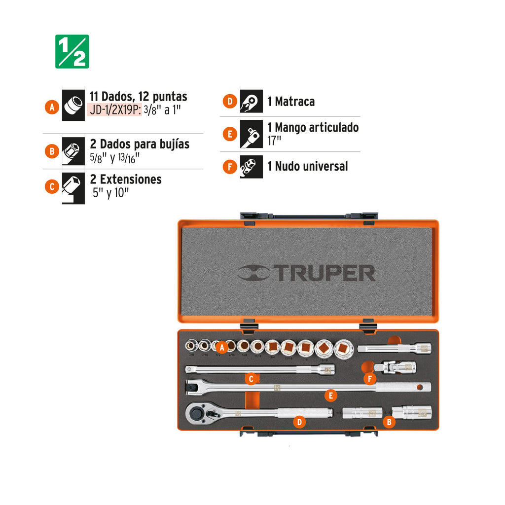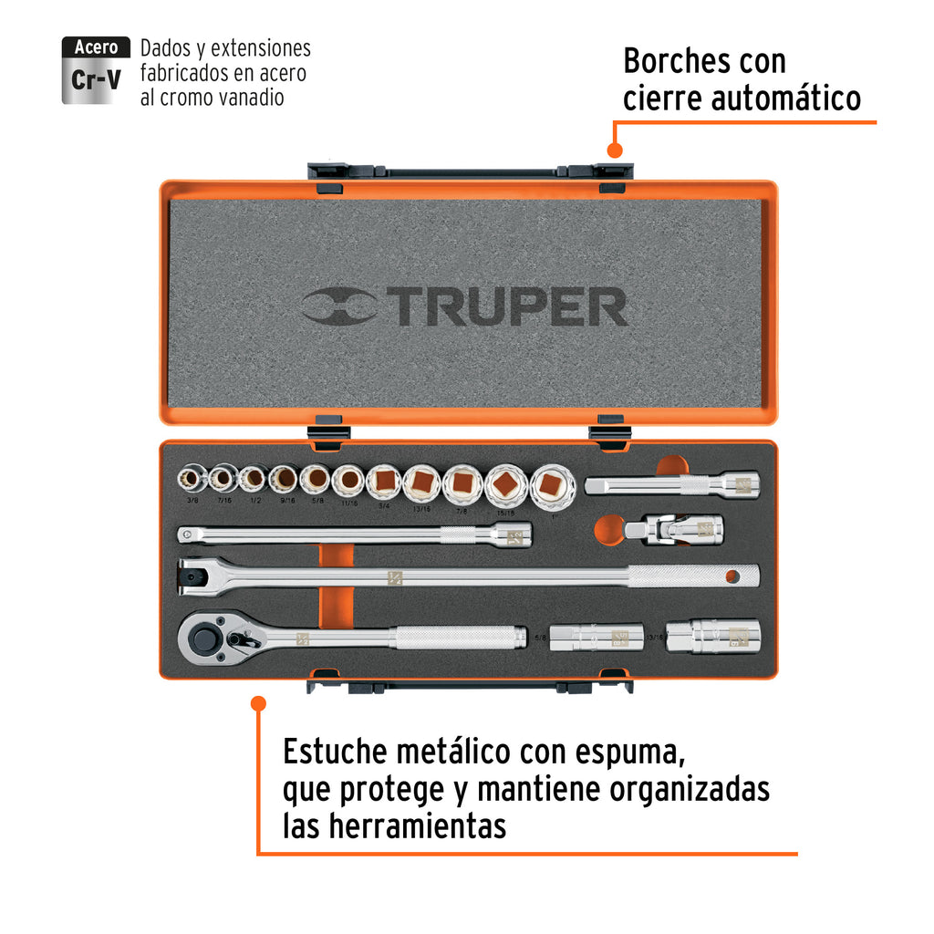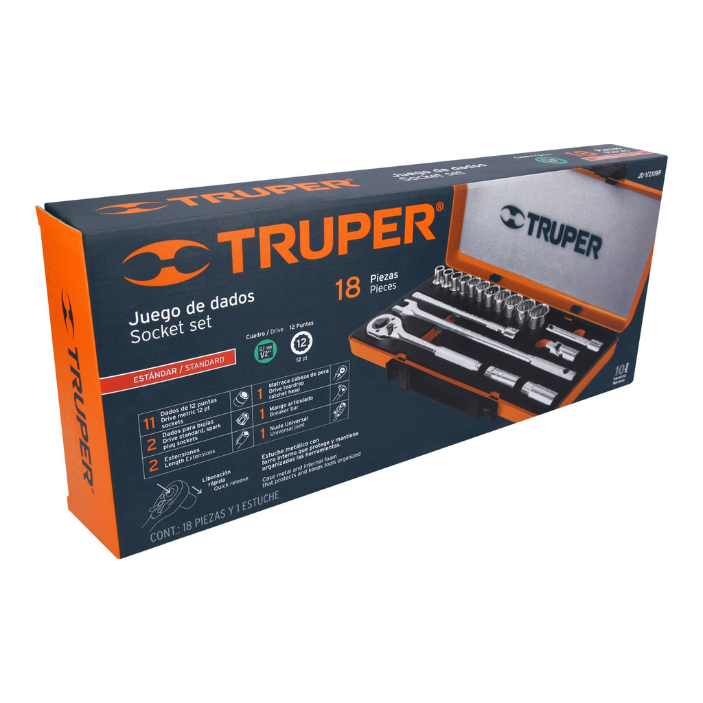 JUEGO DE 18 HERRAMIENTAS CUADRO 1/2' STD PARA MECANICO