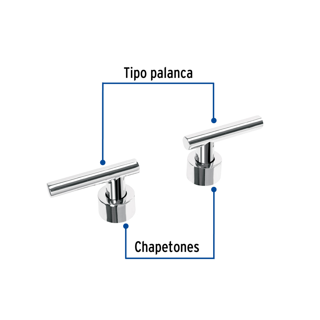 JUEGO DE 2 MANERALES PARA MEZCLADORA, PALANCA, CROMO, TUBIG