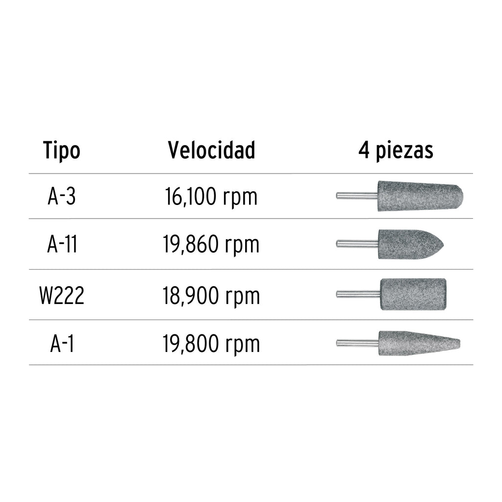 JUEGO DE 4 PIEDRAS MONTADAS ZANCO 1/4, ACERO INOX, TRUPER