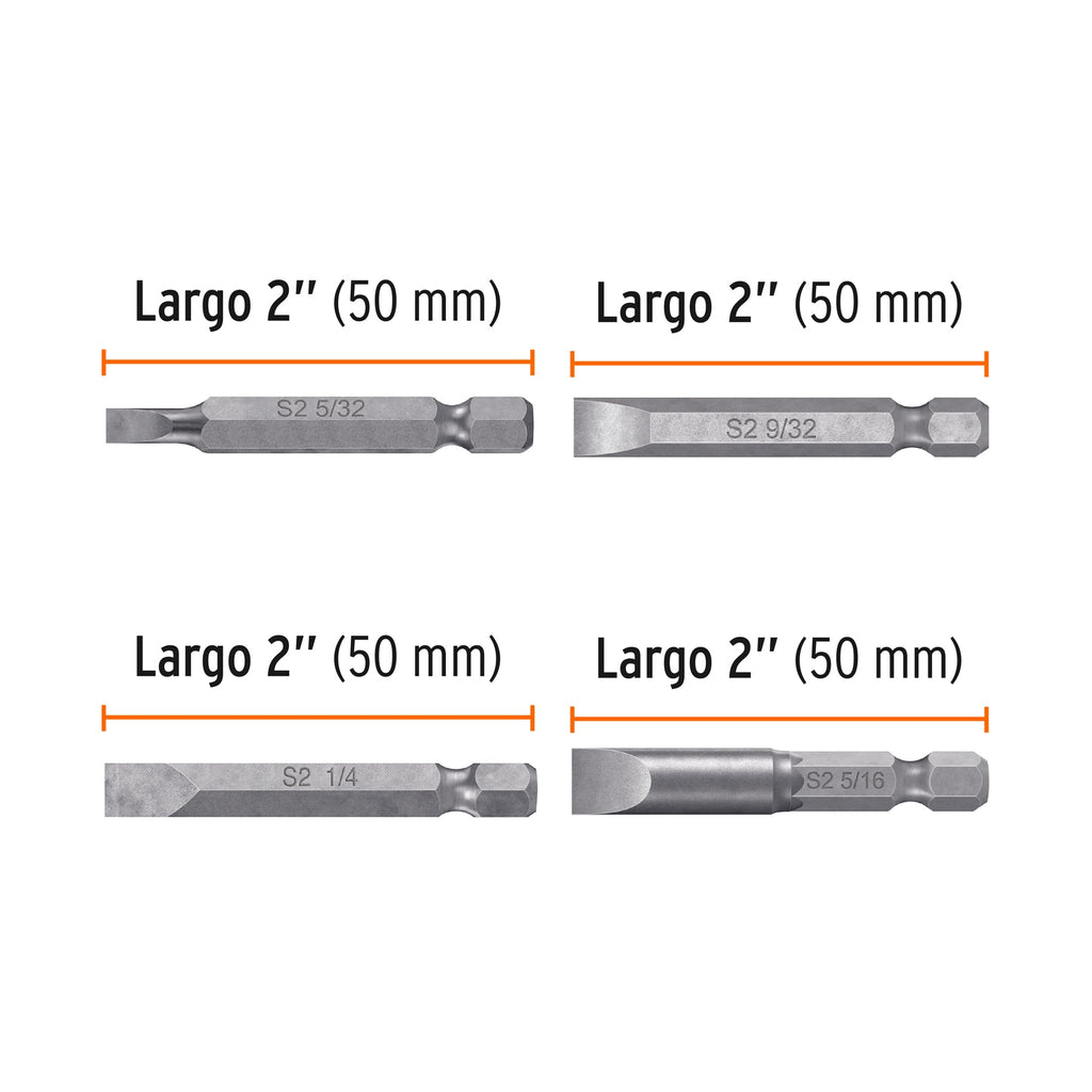 abricadas en acero S2, 2X más resistentes al desgaste que las de acero al cromo vanadioMaquinado para un ajuste precisoIdeal para taladro, desarmador eléctrico o manualEstuche reutilizable