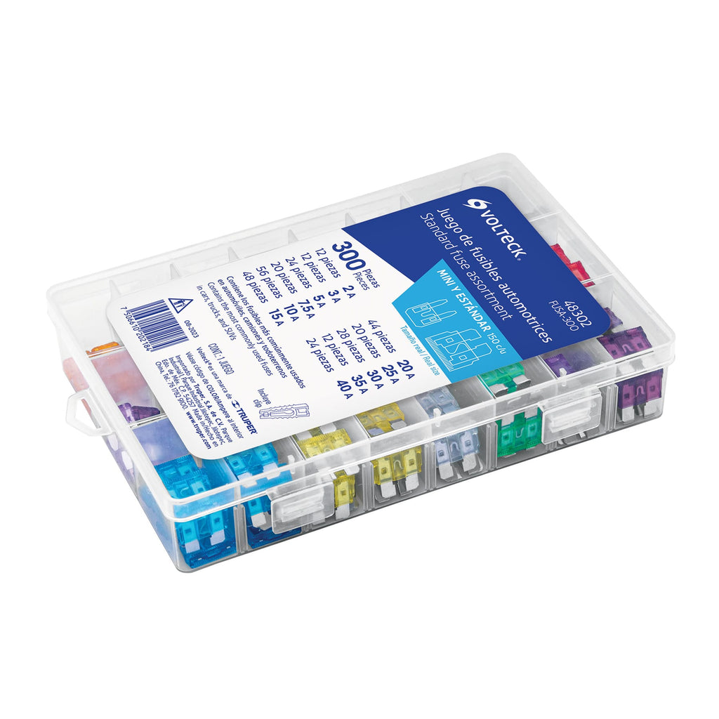 JUEGO DE FUSIBLES AUTOMOTICES ESTANDAR Y MINI, 300 PZ
