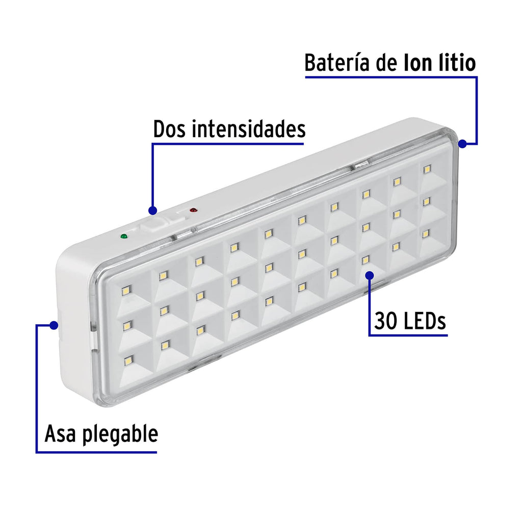 LÁMPARA DE EMERGENCIA RECARGABLE 220 LM, 30 LED